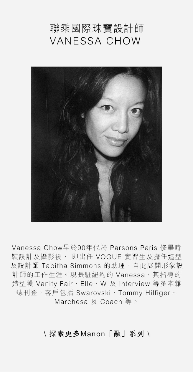 再度攜手國際設計師Vanessa Chow 推出Manon「融」系列全新珠寶作品,靈感源自大自然光影與螢火之美。以流動曲線與璀璨鑽石詮釋自然詩意,將日常微光化作永恒恆珍藏。